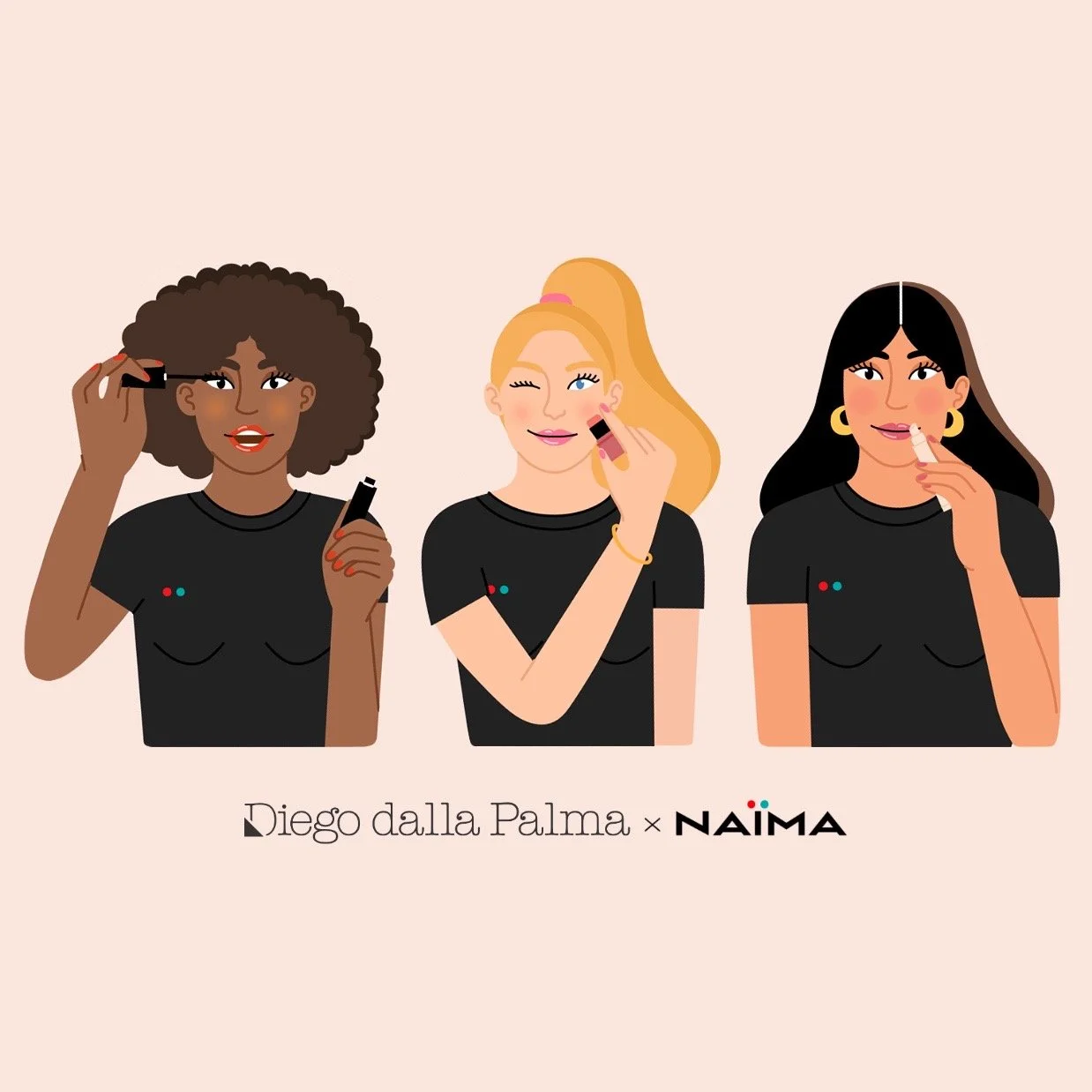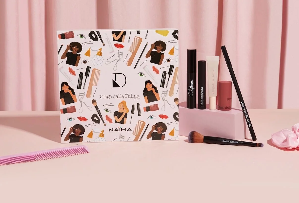 For Diego Dalla Palma Milano, a historic and iconic italian brand known for its expertise in make-up, in collaboration with Naima, the national perfum shop sign, I created an illustrated pattern for a Limited Edition Box with 6 of the brand's most known products.